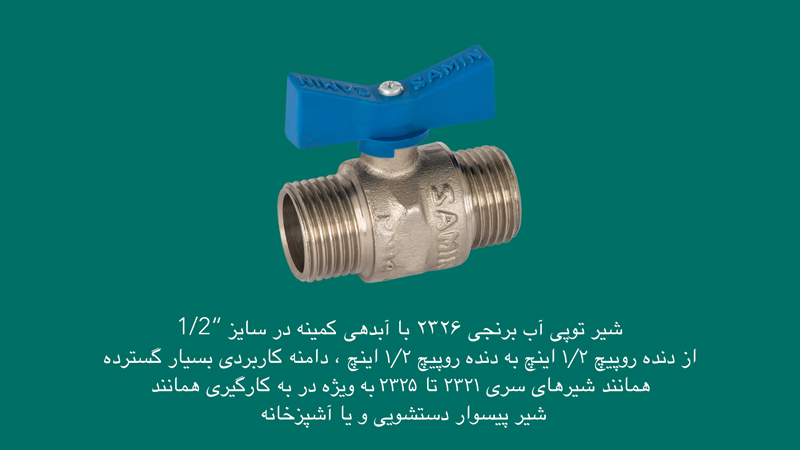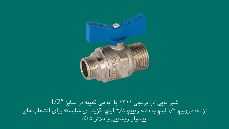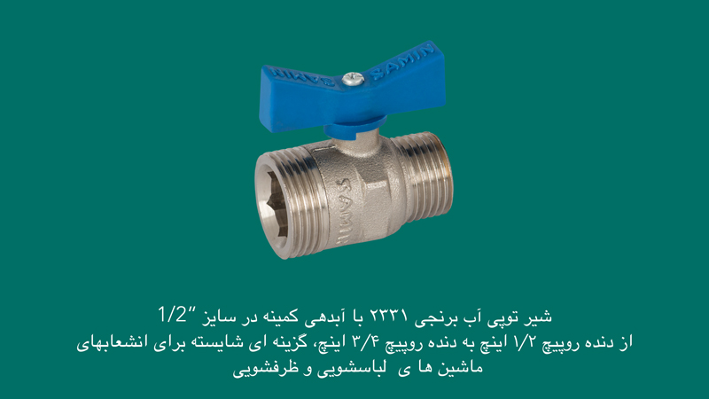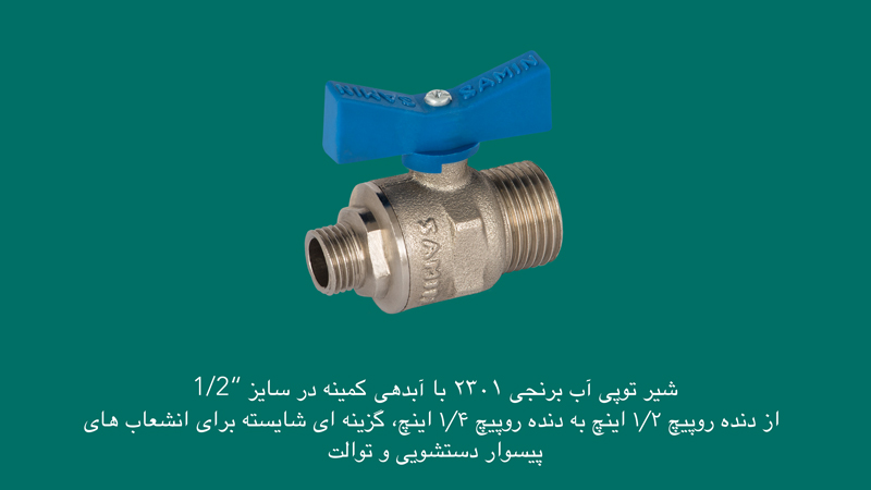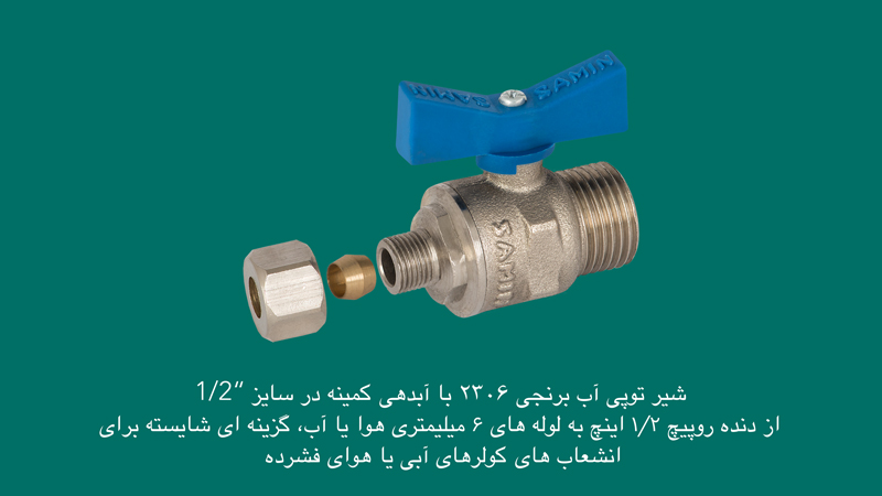 شیرهای توپی آب برنجی ۲۳۰۰ سامین با آبدهی کمینه راه حلی مطمئن و کارآمد برای نیازهای مختلف انشعابی و تبدیلی می باشند.