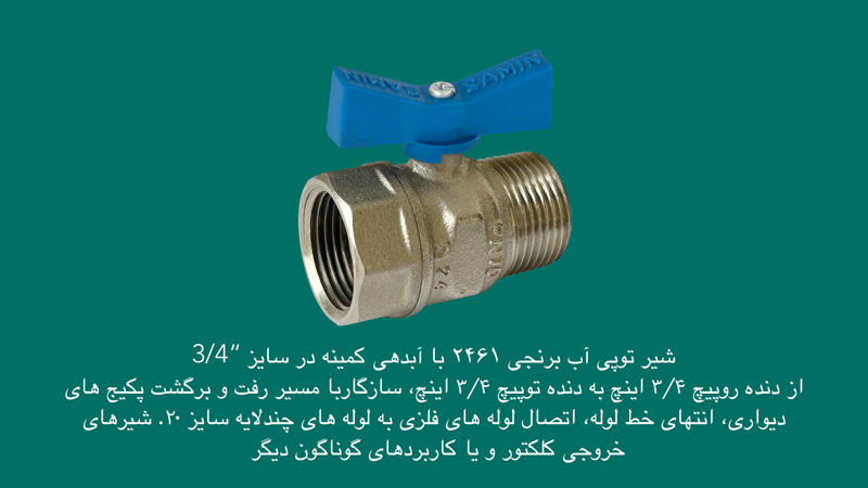 شیرهای توپی آب برنجی ۲۴۰۰ سامین با آبدهی کمینه راه حلی مطمئن و کارآمد برای نیازهای مختلف انشعابی کلکتوری و پکیجی می باشند.